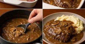 Salisbury Steak with Onion Gravy -Don’t LOSE this Recipe Ingredients Steaks 500 g ground beef ½ cup breadcrumbs 1 egg 1 teaspoon Worcestershire sauce 1 teaspoon garlic powder ½ teaspoon onion powder ½ teaspoon salt ½ teaspoon black peppe